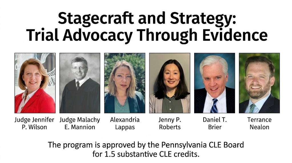 The Middle District of Pennsylvania Chapter of the Federal Bar Association is proud to present the next installment of its acclaimed CLE series: a 1.5-hour hybrid program entitled “Stagecraft and Strategy: Trial Advocacy Through Evidence”